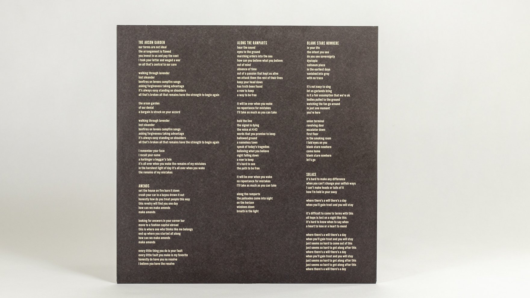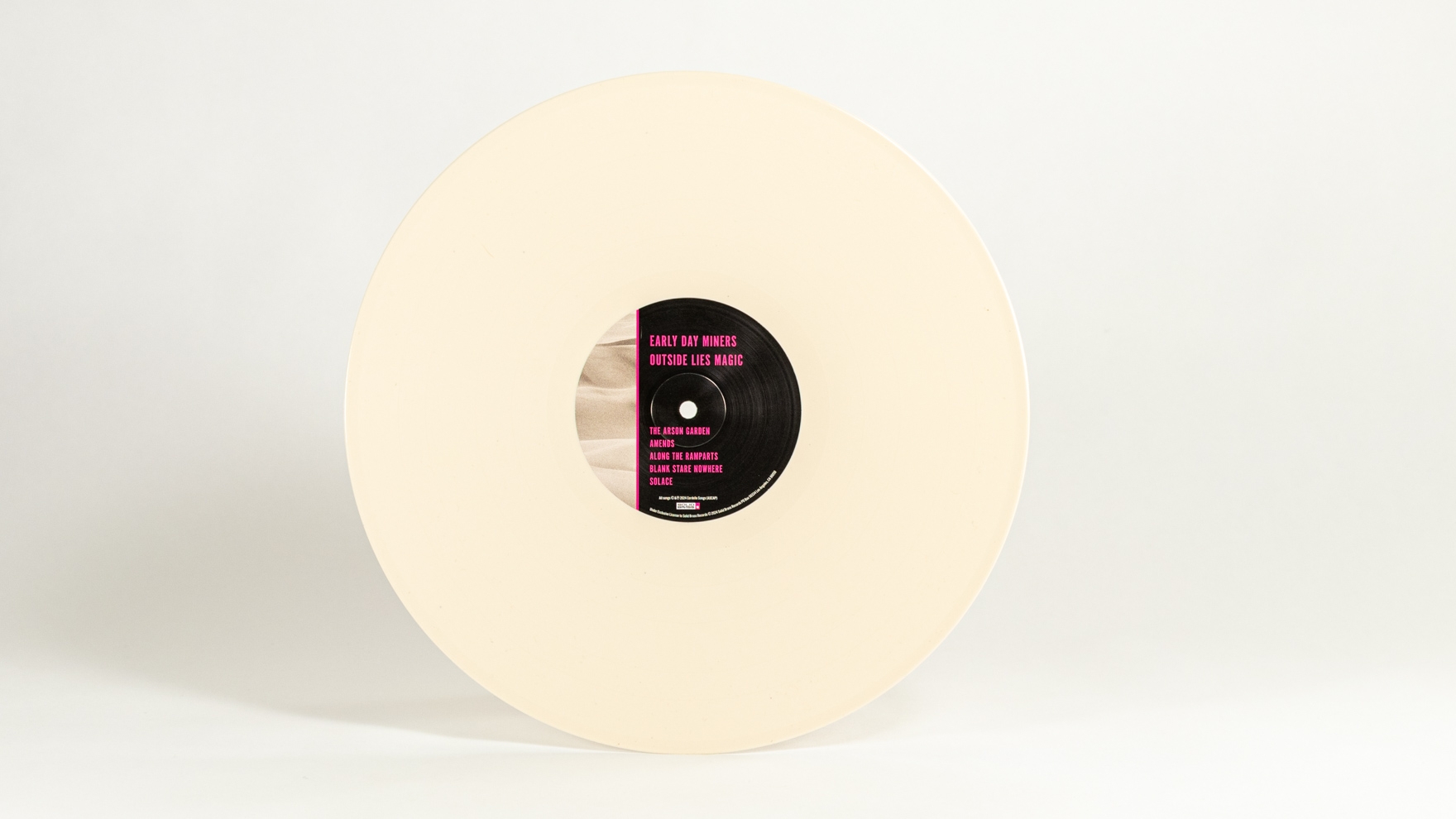Ninth album from the New Orleans via Bloomington, IN band. The cover image is part of Christa Blackwood‘s ‘Prix West’ series. Daniel Burton worked closely on the look and feel of the raw board printed jacket. The pink line from the cover carries over to the black inside of the jacket.